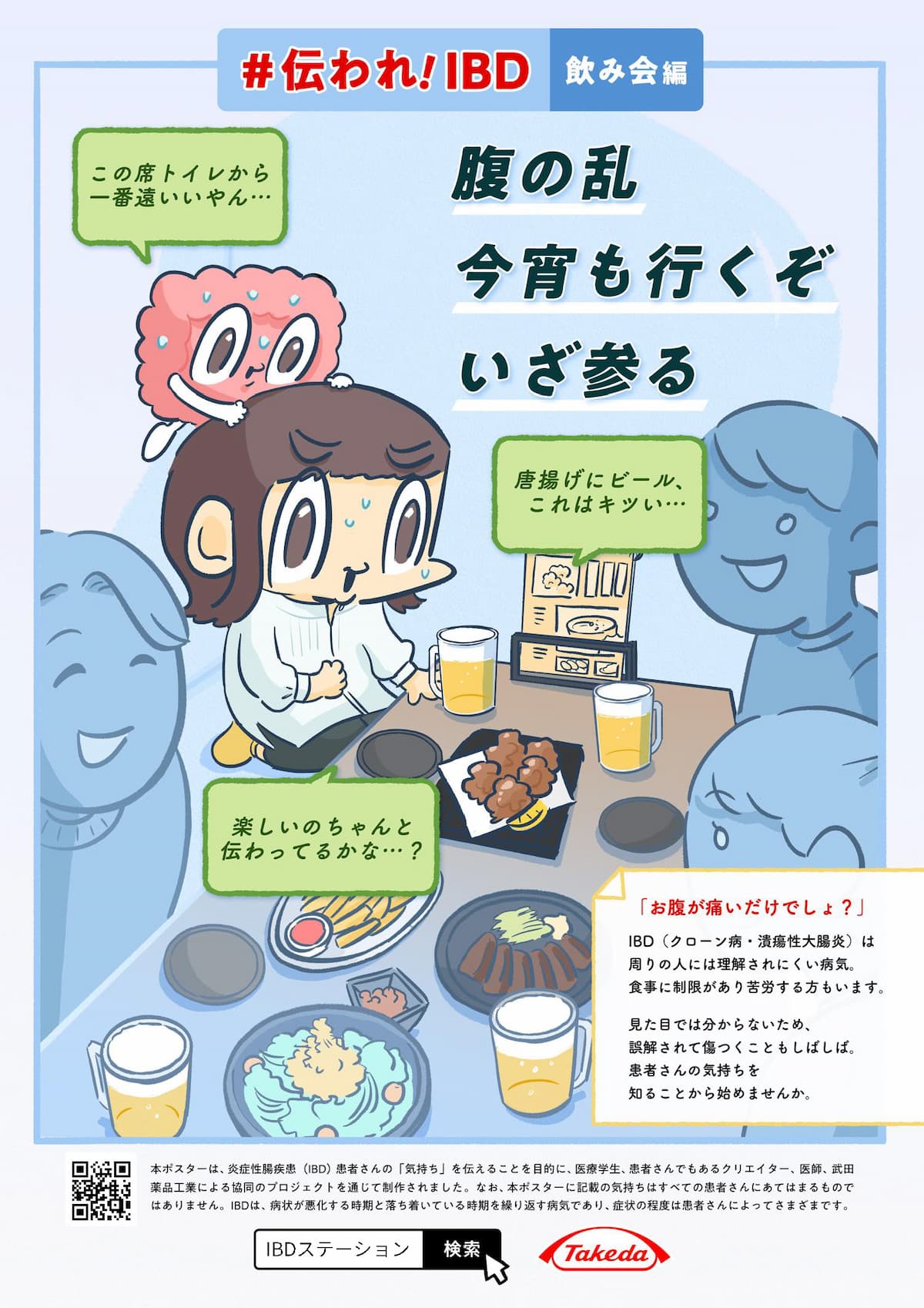 そこで、武田薬品工業株式会社は、働くIBD患者さんの伝わりづらい気持ちを社会に伝えることを目的に、 2021年3月27日(土)に、IFMSA-Japan(国際医学生連盟 日本)、一般社団法人日本薬学生連盟に所属する14名の医学生、薬学生、看護学生、IBD患者さんでもある医師、クリエイターとともに、「IBDデジタルポスター」協同制作ワークショップを実施しました。