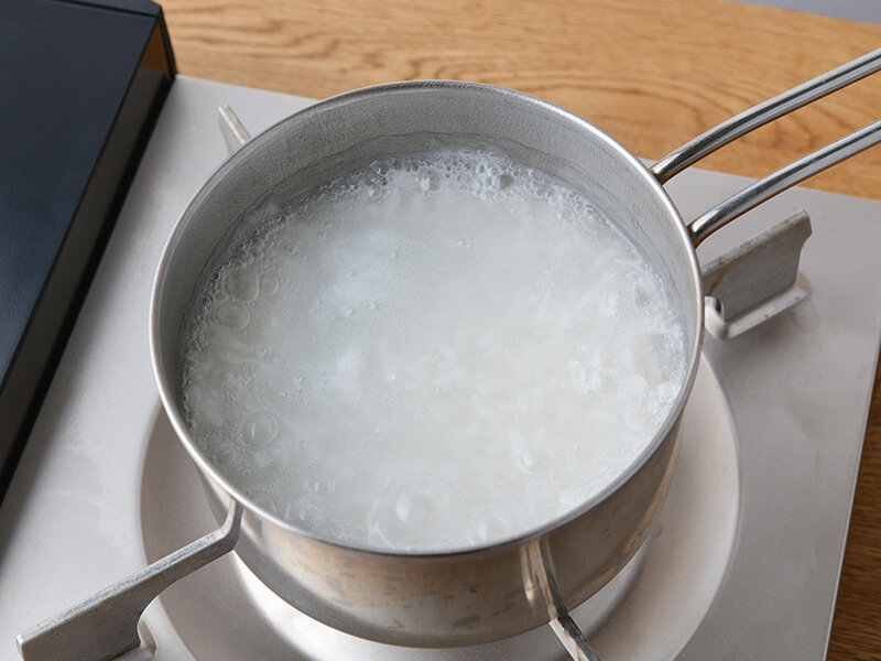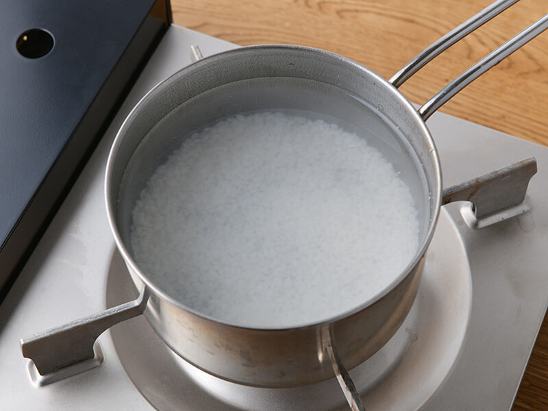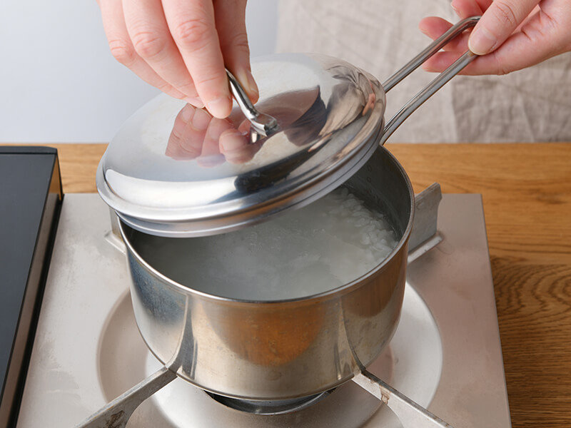 - 鍋に洗った米と水を入れて、中火で加熱します。